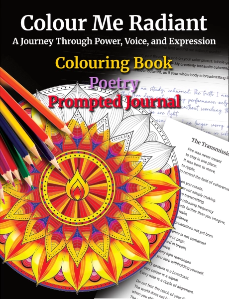 Colour Me Radiant is a chamber of fire where silence becomes voice and hesitation becomes transmission. Moving through seven Radiant Fields, Courage, Boundaries, Authenticity, Creative Expression, Integrity, Radiance Beyond Ego, and Transmission, this book invites you to colour as declaration, breathe as alignment, and speak from coherent flame.
